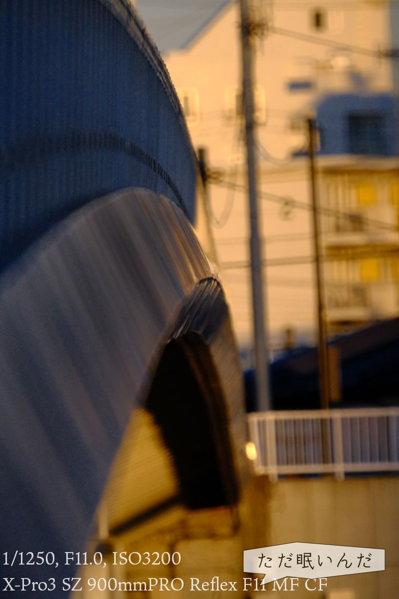 X-Pro3に装着するとこんな感じの姿に。なかなかデカいのだけど、普通は900mmだったらもっと巨大なレンズになるはず。ミラーレンズの面目躍如といったところ。
