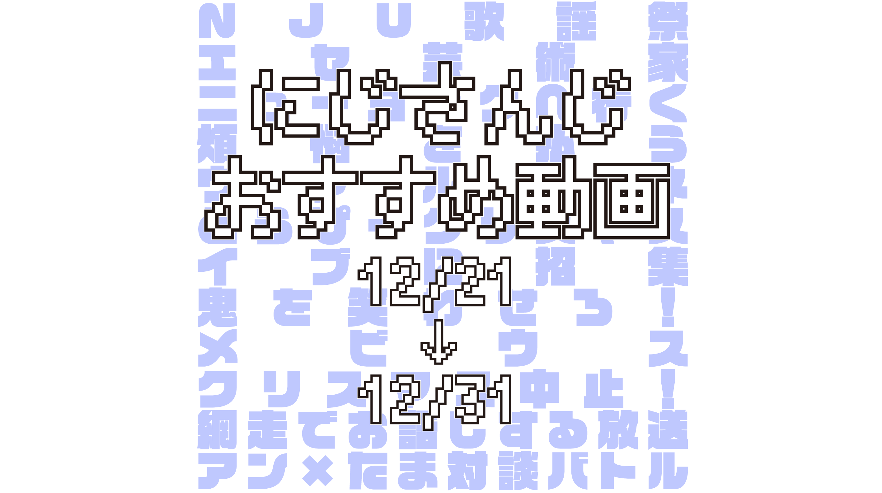 開始後しばらく西園チグサひとりでの配信が続くのだけど、その背景が「巨人の星」の星飛雄馬が失敗したクリスマスパーティーをオマージュしている。令和に!?